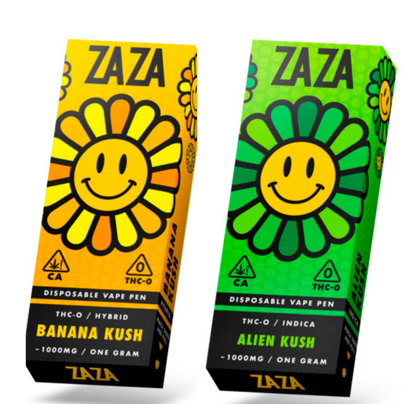 ZAZA THC-O disposable. These THCO Disposables feature a premium battery made by ALD that hold 1 gram of THC-O distillate. ZAZA uses only the most potent and pure 3rd party lab tested distillate. Each premium flavor made by ZAZA consists of flavorful top shelf organic terpenes and potent THC-O distillate. ZAZA began in the legal delta 9 cannabis space and has now made its way into the THC-O market.